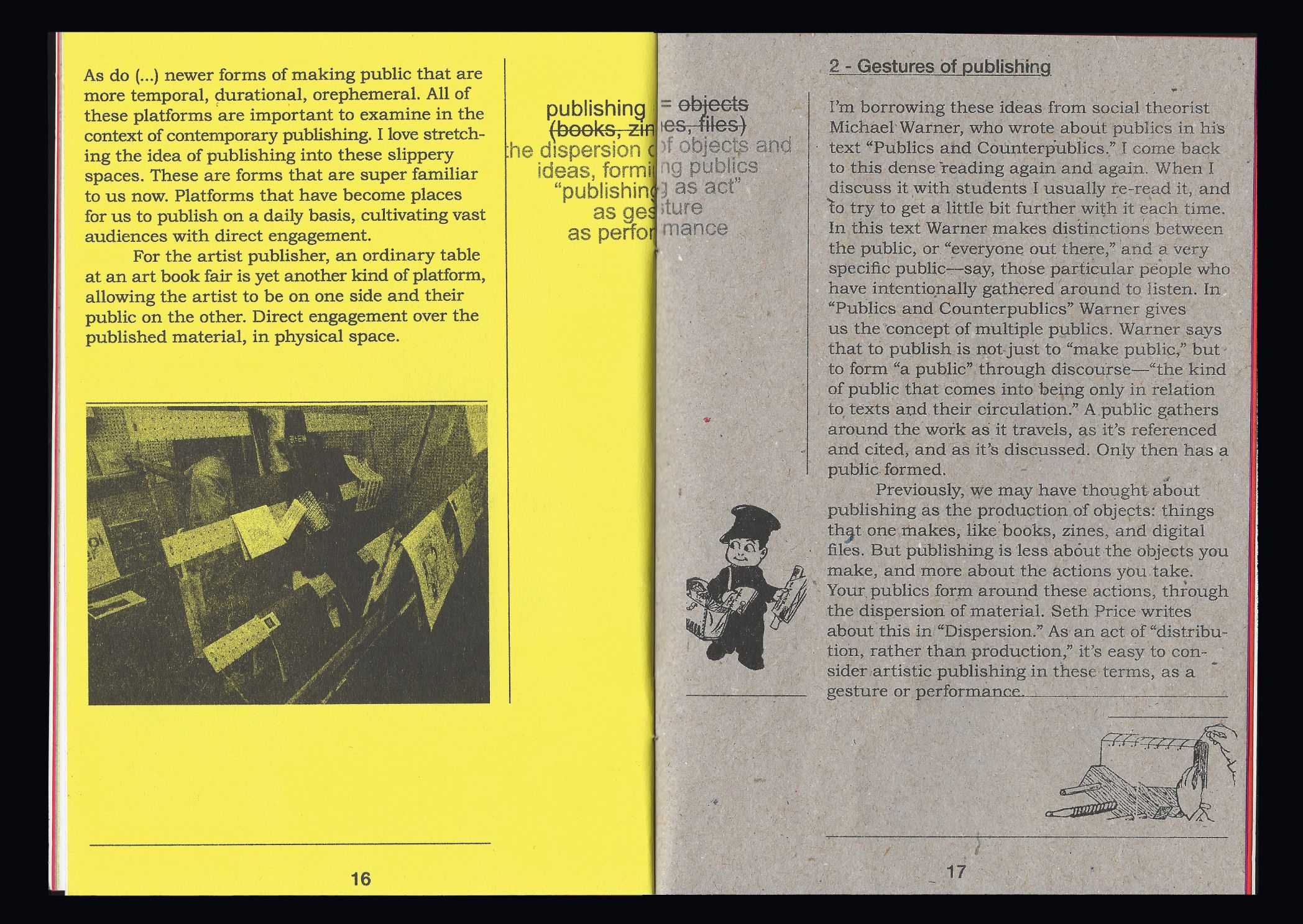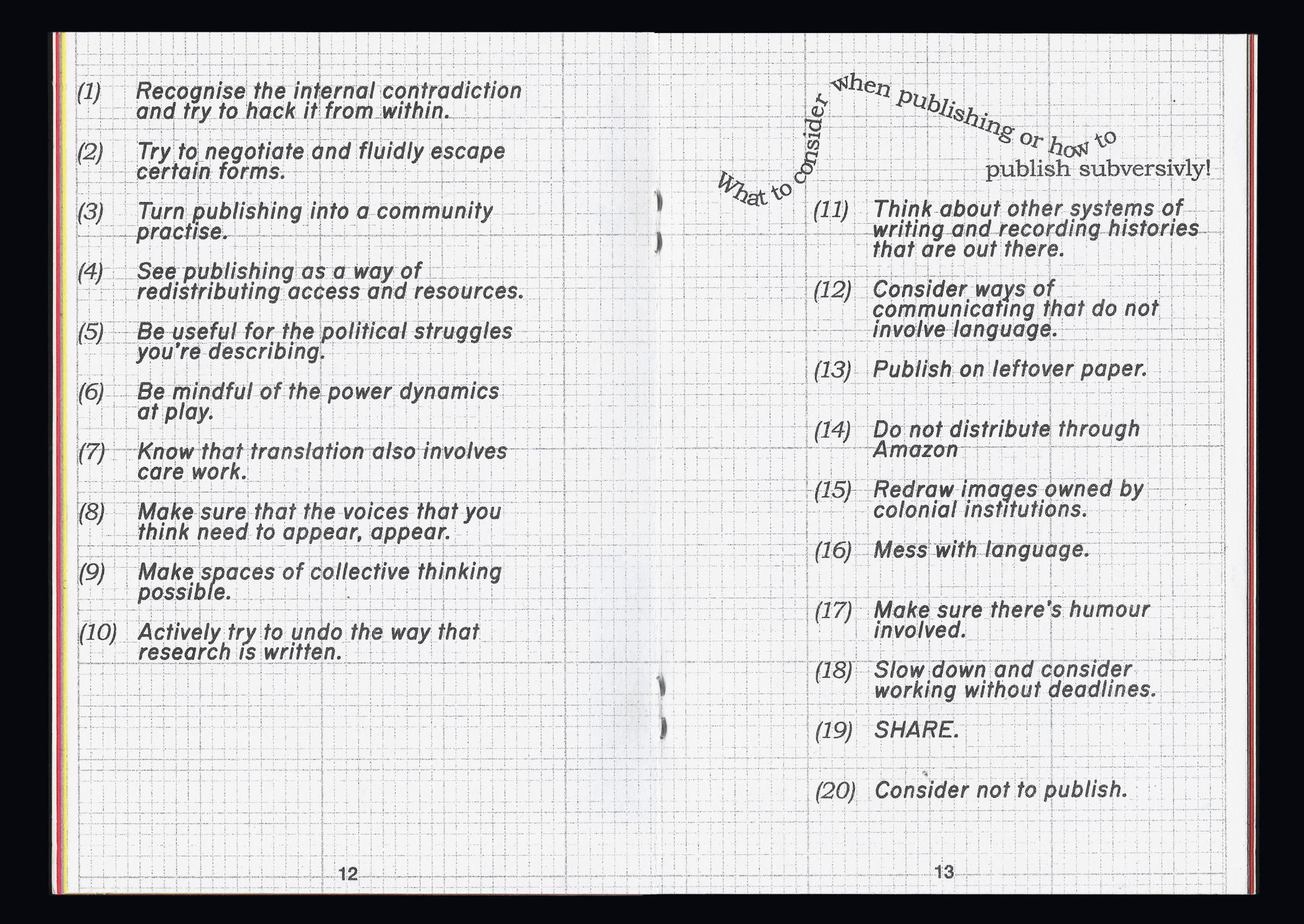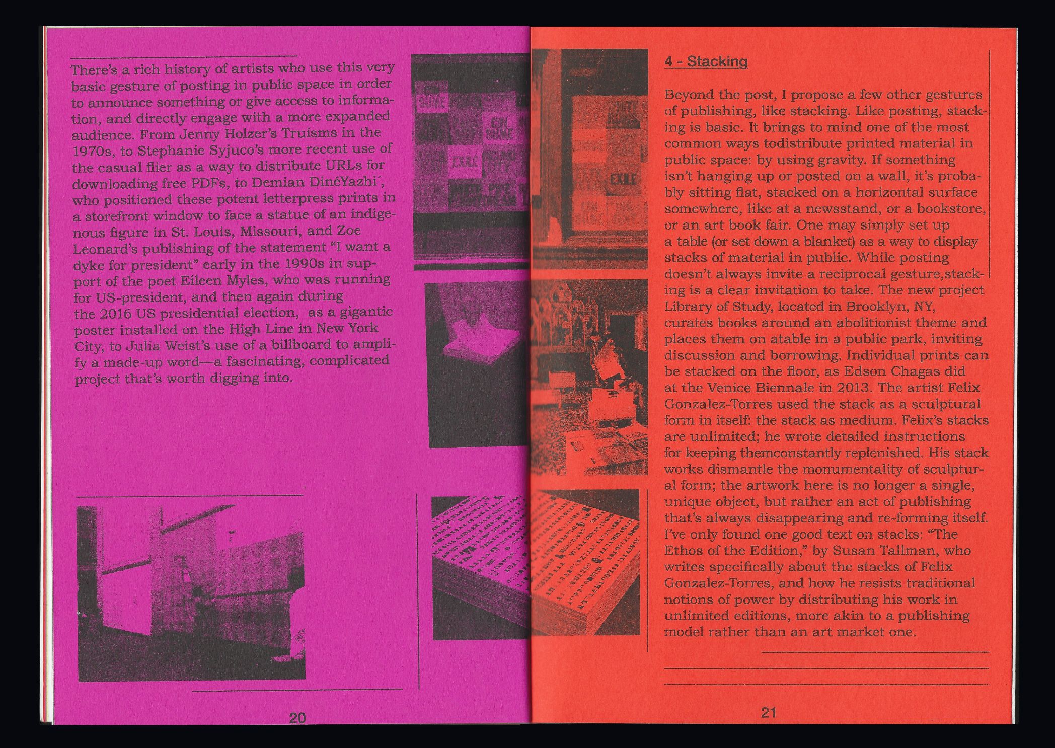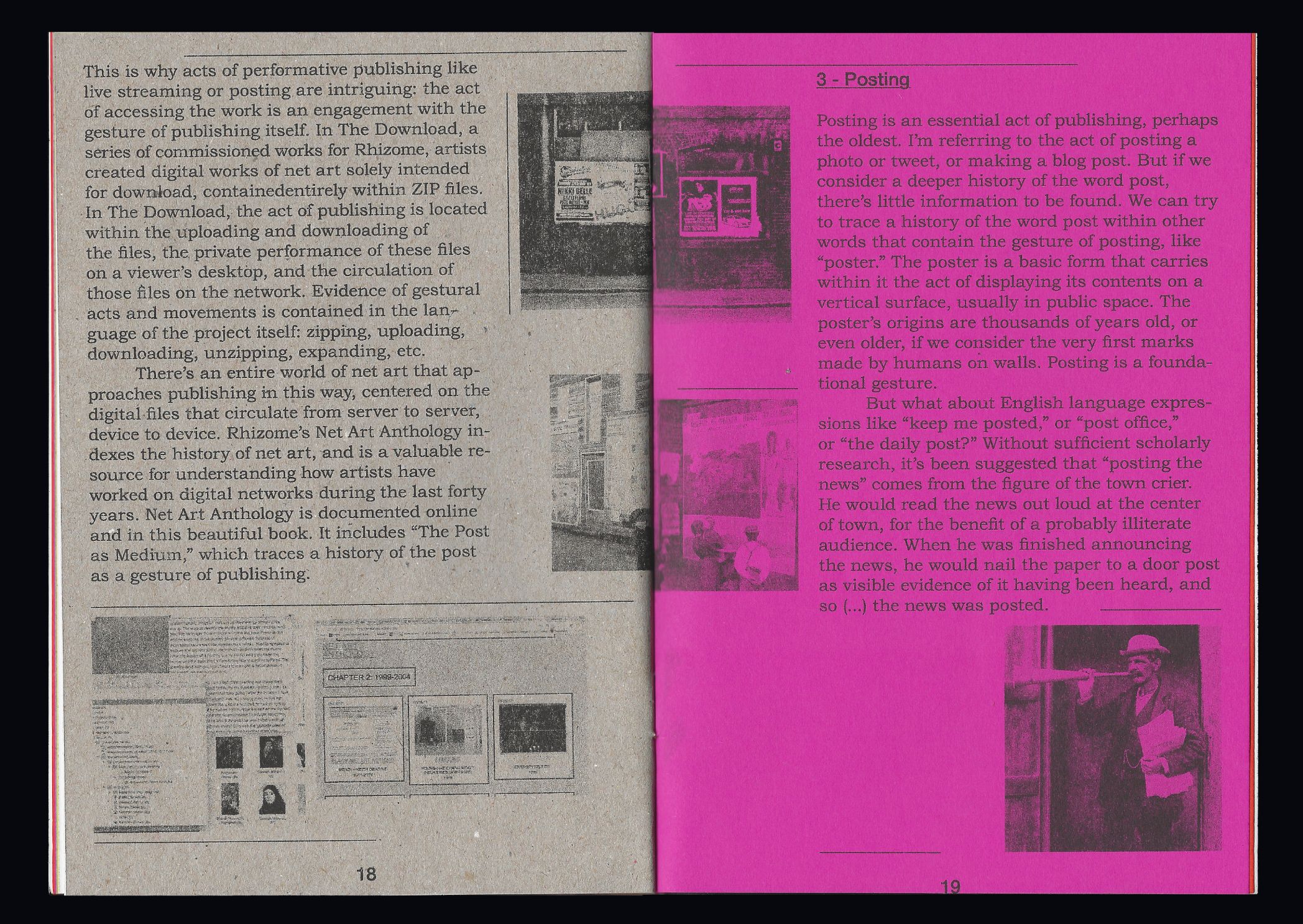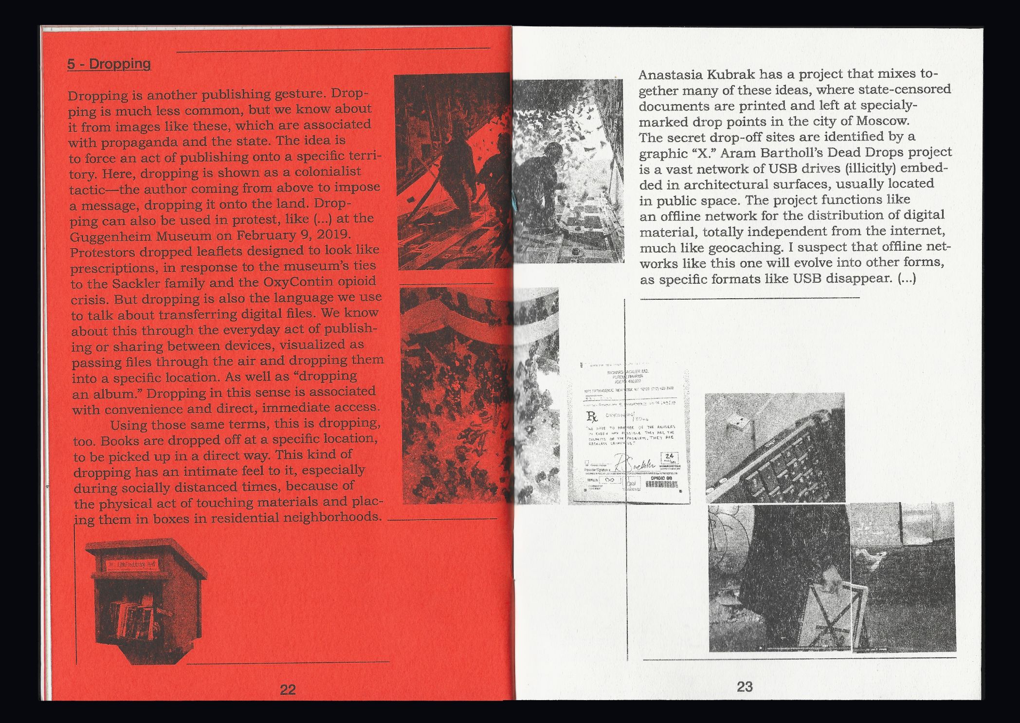 Ein Zine, welches als kurze Einführung zu alternativen oder subversiven Veröffentlichungspraktiken und Verbreitungsmethoden dient. Jedes Zine ist in Schwarz auf mehrere verschiedene Papiere mit Riso gedruckt. Es sind Auszüge aus drei spannenden Texten enthalten, die das Thema behandeln. Zusätzlich dazu gibt es eine Webseite unter der Domain subversive-publishing.info, eine Sammlung an Ressourcen, die sich mit derselben Thematik auseinandersetzen. Die dazugehörige Webseite ist im Kurs "Stay a while and listen" von Johannes Schmoll an der Universität der Künste Berlin im Sommersemester 25 entstanden.